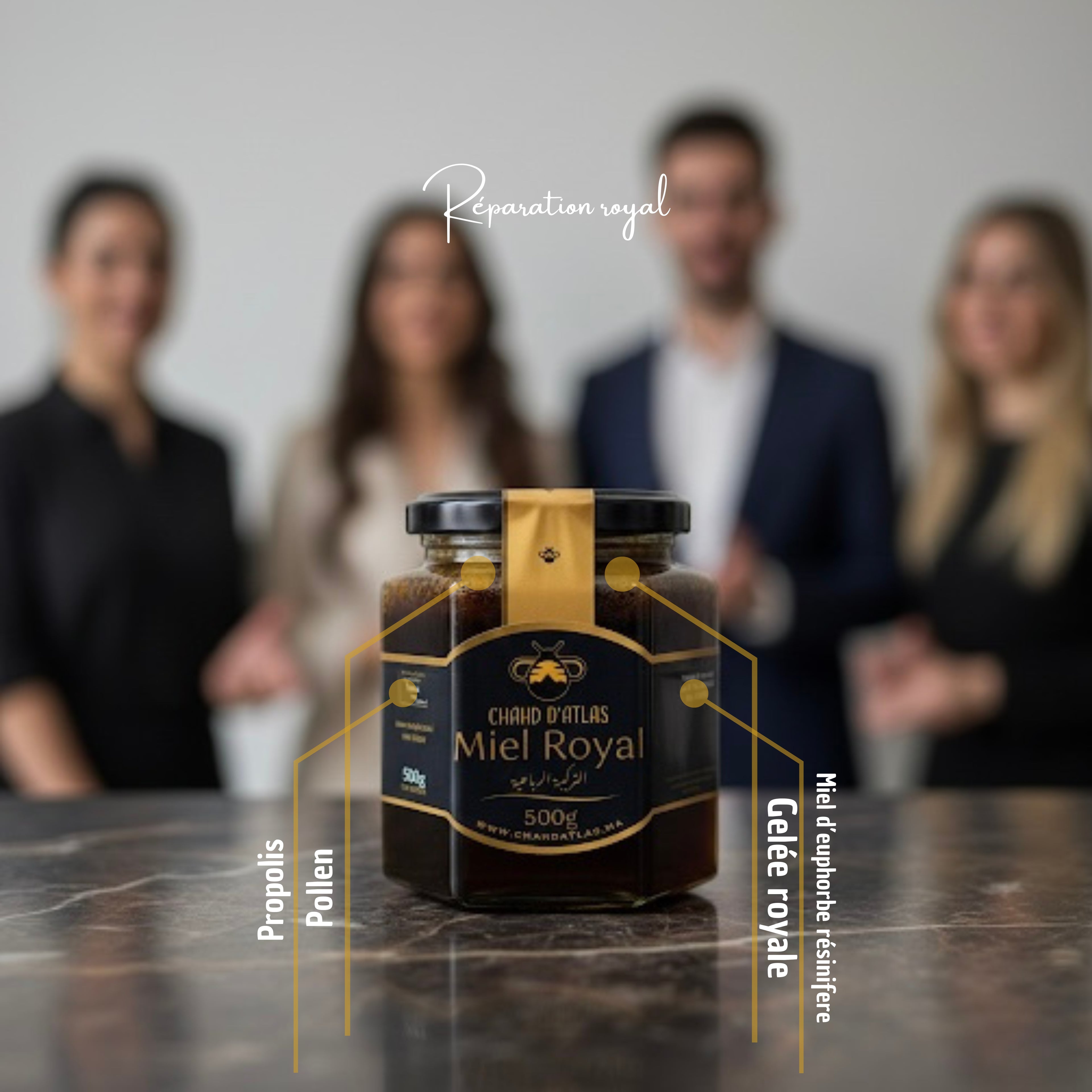 Chahd d'atlas vous apporte le miel royal composé de 4 élément 🐝 Conçu avec des doses bien prècises pour apporter l'équilibre à votre corps